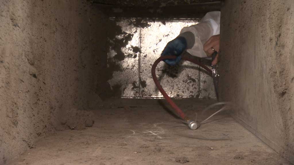 Because the ducts are behind walls and above the ceiling, the only way to clean them effectively is by using a high-powered, truck-mounted vacuum and compression system.